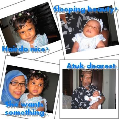 Saw Dhirah's new hairdo? Nak tau tu sape nye kje? Its hubby's.. Hehee.. At 1st, I didnt knw wat he's up to but bila dia start dandan anak dara dia yg sulung nie.. Haa kau.. ku tgk mcm b'slerak jek!! Hehee.. Tpi lawa lak bila da fully done. Gd job!! Hehee..