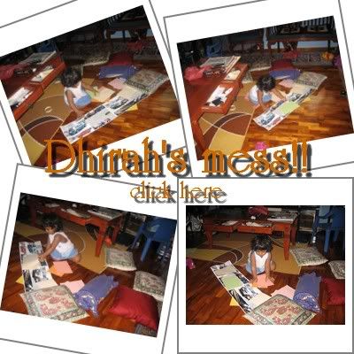 DHIRAH.. MAMA LOVES YOU, DARLING!! THANX FOR D MESS.. NW, BE GD & GO CLEAR UP D MESS URSELF!! hehehehe.. Buli kcik seh aku!! *winks*