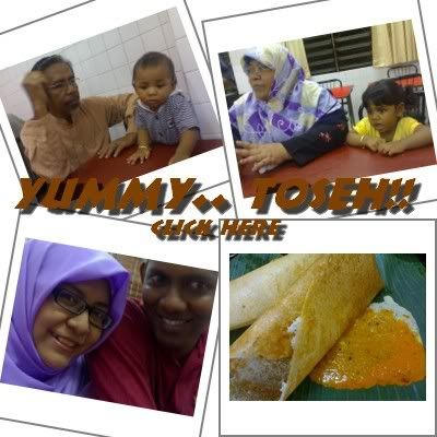 Most of us had Paper Thosai except baba who had Masala Thosai. Dhirah had a bit sinz she's too tired or pretty slpy. She ONLY drank, MILO. But Nadiah.. Well, she ate a lot!! Yeah.. she loves it but its just not enuf for her. Hehee.. She was having her milk and as soon as her eyes sets on dos thosai, she pushd away her bottle. And wen ders no more thosai left, den she cont to hv her milk again.. Nadiah, nadiah.. *shaking head*