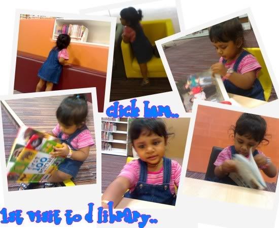 Not only dat.. she kept changin seats frm one plc to another. Hehehe.. And when she reads, she reads loudly. *lol* And guess wat. One of d librarian approach me and she compliments on hw cute n clever Dhirah is. Hehehe.. Clever? Hmm.. Bole la.. *lol*