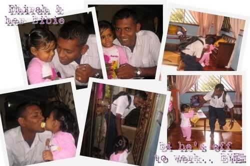 Cheeky Dhirah kept waving n sayin "BYE" to him. As if she cant wait to see hubby out of d hse. Even hubby noticed dat too. *lol* =D