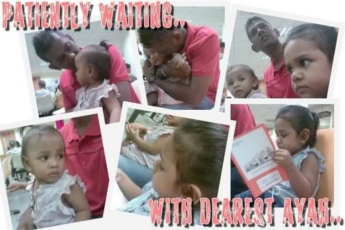 Nadiah's checkup @poly went smoothly. She's a one strong girl. She didnt cry a bit when she was bein jab. But then she became quiet for a while though. Hubby and I was worried. Nahh.. its just for a while.. soon aftr we reachd mak's plc, she was one mischief girl. Hahaa..