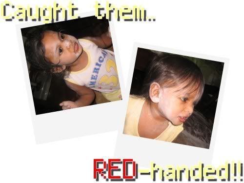 They were watchin Hi-5 in my room while I was watchin a hindi movie in the living room. I was telling mum on the fon on hw happy and excited the girls are cos I saw/heard them dancing/singing when I peeped at them earlier on. Aftr I hung up the fon, I noticed hw "quiet" the girls are suddenly and I just had to check them out..