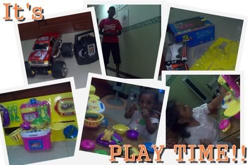 Back home, both hubby and Diah cant wait to play their toys. Dhirah was fast asleep as soon as we got home. So, Diah had a fun time playing masak-masak with me!! hahaha..