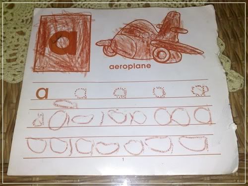 Mama : "Clever.. now, mama wants you to write letter A.. follow d dotted A..