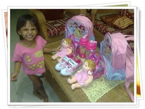 But no, for the girls.. and there's water bottle for both of them.. Though its not the princess bottle she wanted.. She's in love with that Barbie bottle!!